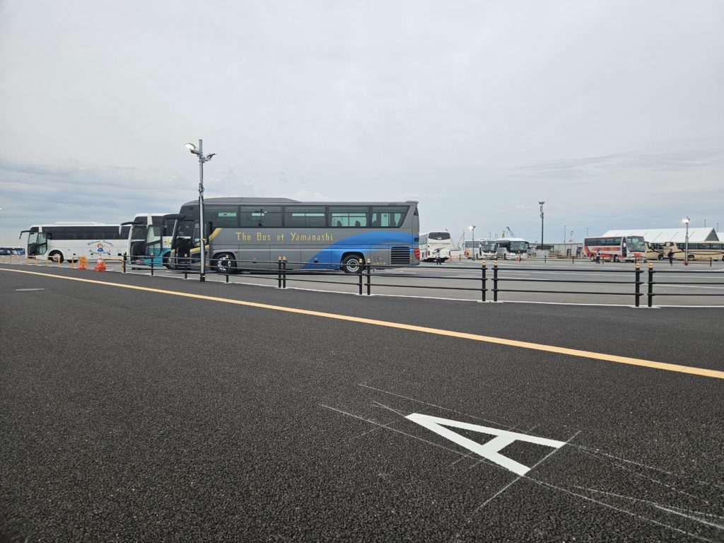観光バス乗り場まで10分くらいは歩きました…